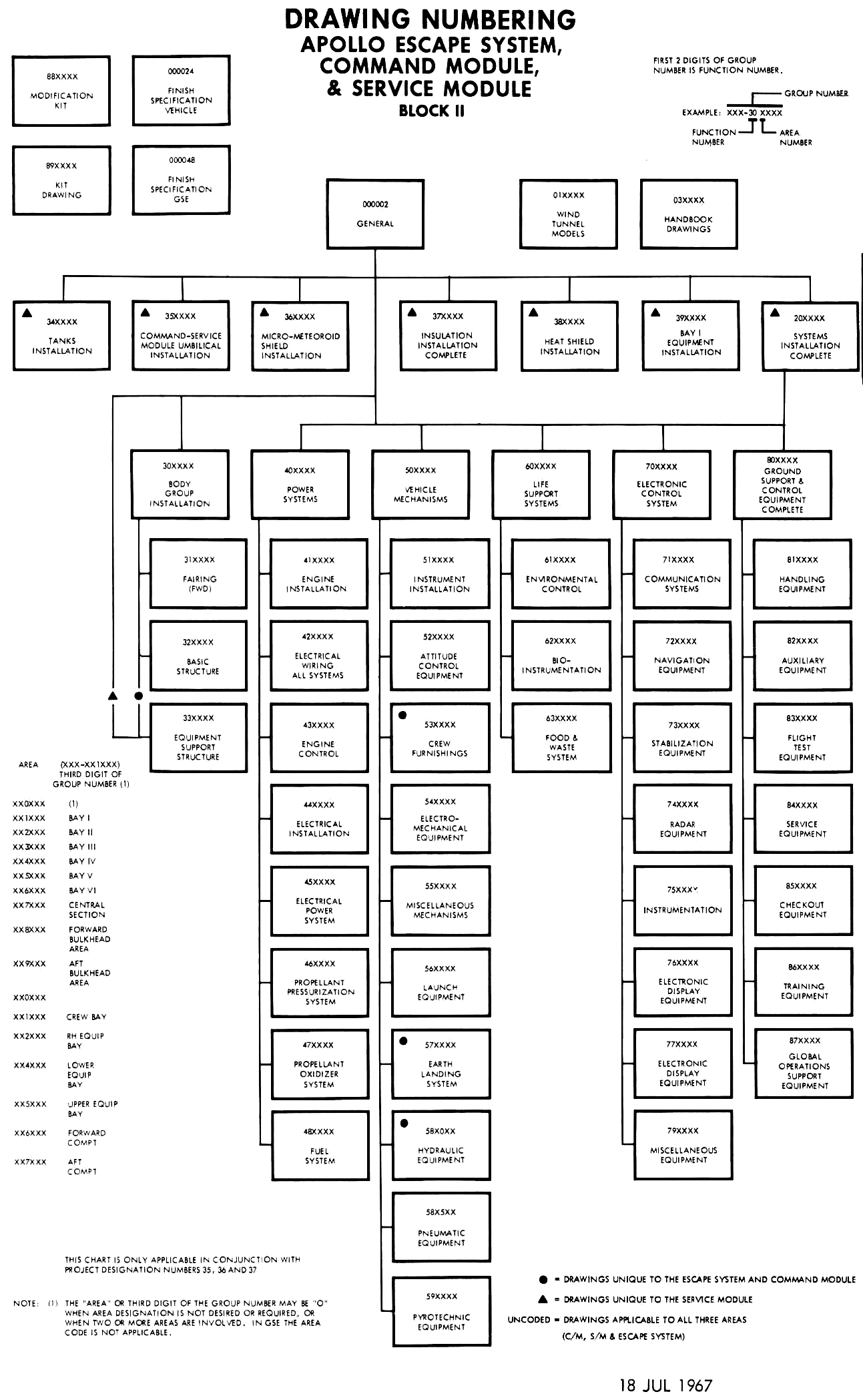 In this section, the engineering drawings for the onboard Guidance & Navigation (G&N) systems in the Command Module and Lunar Module are provided on a mission-by-mission basis. Note, though, that there are assemblies in the engineering-drawing set that don't form any part of the spacecraft's onboard G&N system, and those assemblies aren't covered in this section; an example would be the AGC's test set.